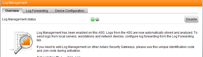 I activated Log Management but not the Log Forwarding. If I click on the Log Management menu entry all three tabs are enabled. See picture 1.