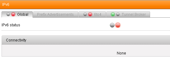 IPv6 is disabled, but Tunnel Broker is still configured as enabled, therefore its green. In the backend there is no tunnel broker client running...