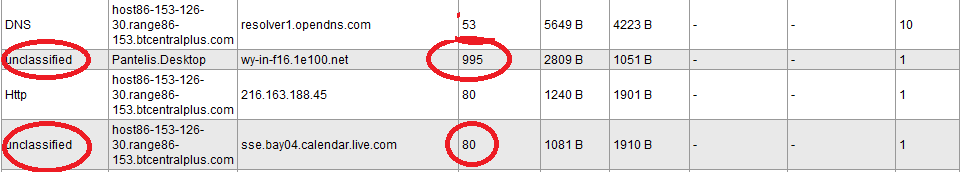 I have attached the relevant pic showing port 80 and 995 as unclassified