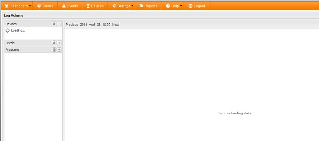 Please see pics. I am unable to access the events even thought I can see from the graphs that there are events logged. Moreover I am getting the below
