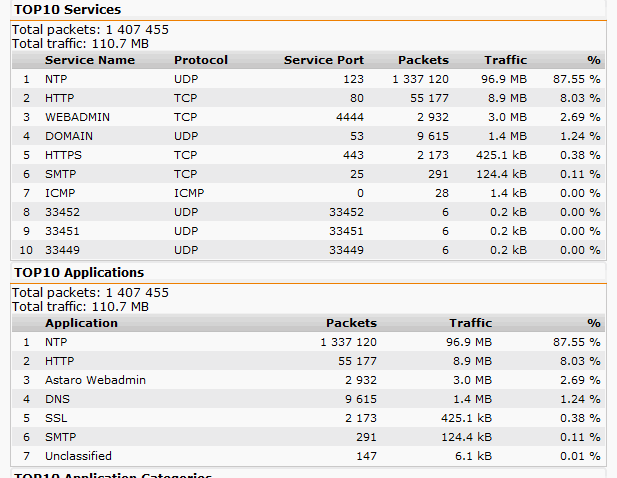 Just looking at my dayly report shows me a huge amount of traffic for ntp.