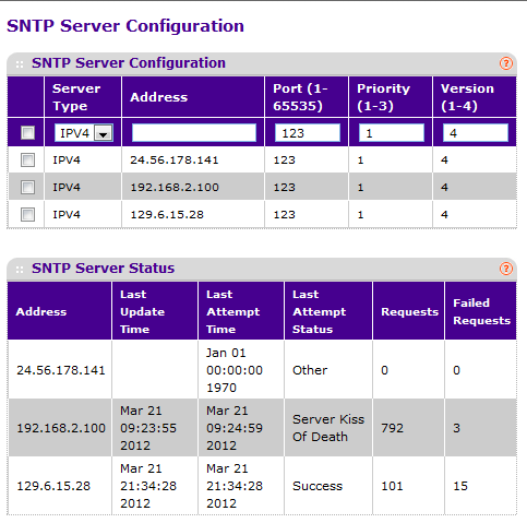 I've noticed that my Netgear GS108Tv2 had the following error (kiss of death packets) when trying to connect to UTM (192.168.2.100) for NTP updates. I am not sure if this was the same when it was connected to V8.301 so it might not be related the UTM.