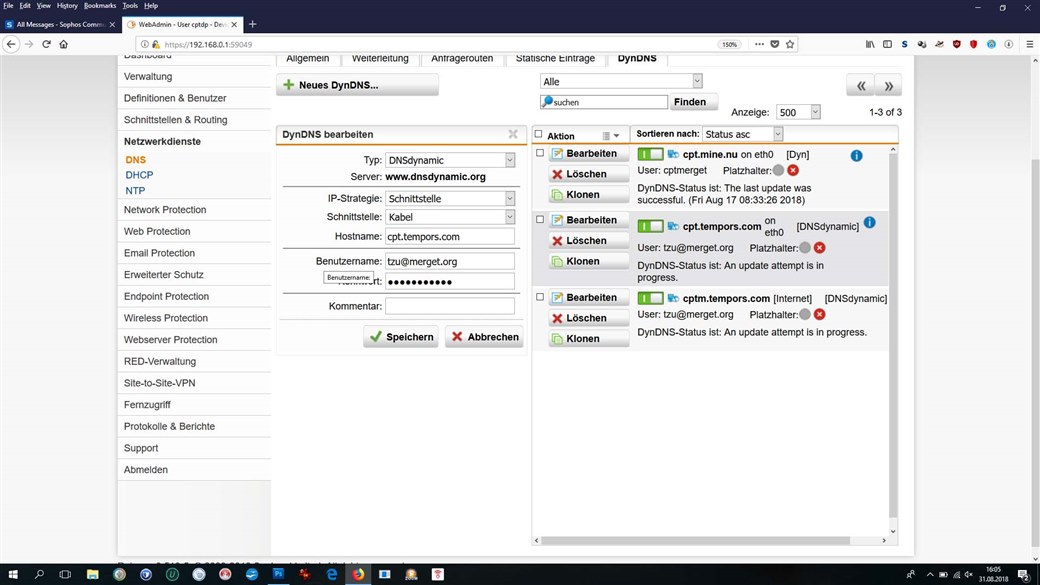 am using dynamic ip in the moment with dyndns.org. Everything is working fine. Now I wanted to change to dnsdynamic.org and can`t get that to work. I used the login data from dnsdynamic.org as user and password. Please anyone have a look at the pictures I added and help me what could be wrong.
