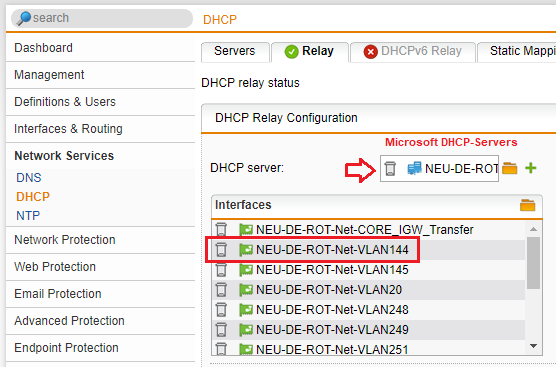 Interfaces on Sophos - DHCP-Relaying for Interface VLAN144: