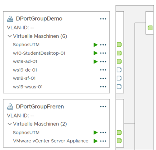 I tried to add a Firewall Rule ANY - ANY - ANY and thought for test purposes i should be able to connect from the DPortGroupFreren to DPortGroupFreren with RDP. But ping doesnt get through. And RDP Session cant be established.