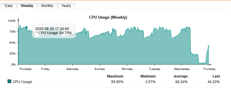 How about pictures of the Daily and Weekly CPU and Memory Usage from 'Logging & Reporting'?