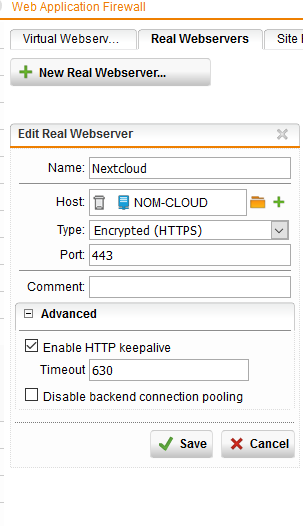 i want to use the utm 9 virtual webserver protection reverse proxy to protect my nextcloud installation.