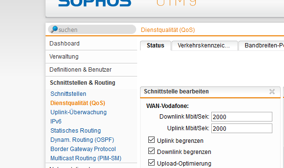 wird lediglich unter Qos die Bandbreite reguliert.
