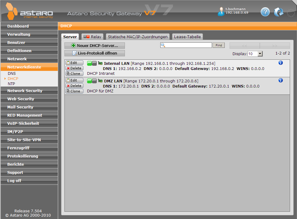 Da ich bei dem VPN Netz 10.242.2.0 nichts geändert habe -> habe ich den 10.242.2.1 als DNS angegeben. Vorher stand die IP von Astaro drin.