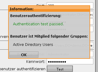 ich habe zwar erst seit ner Woche meine Astaro am laufen, auch ich habe mich mit dem Thema auseinandersetzen müssen und soweit ich das es sehe, dürfte es in Ordnung gehen da es sich ja hier um einen "Beispielbenutzer" handelt. DIe eigentliche Authentifizierung steckt ja schon in der "Blind DN", siehe CN=Administrator.... Ich glaube, es geht ja der Astaro nur darum zu überprüfen, ob sie auch wirklich Zugriff darauf hat....
