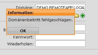 Was mir noch aufgefallen ist - die ASG kann den DNS-Namen des DCs nicht auflösen, sollte Sie das nicht tun können?