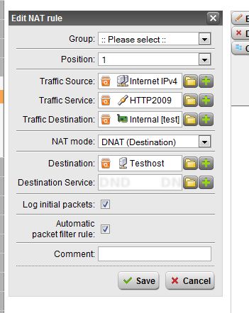 - neue Servicedefinition HTTP 2009 angelegt und in die DNAT Regel genommen