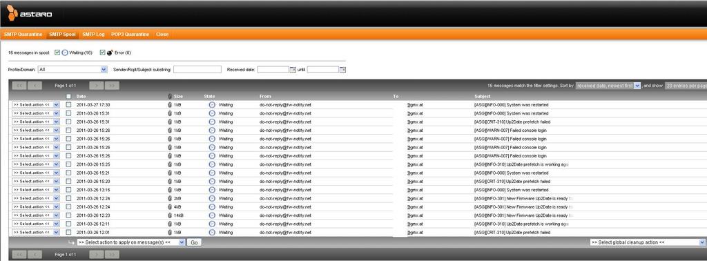 ich mein die mails die die ASG von selber verschickt! (beispielsweiße wenn ein angriff erkannt wird sollte eine e-mail von der asg aus an mein gmx konto gehen.