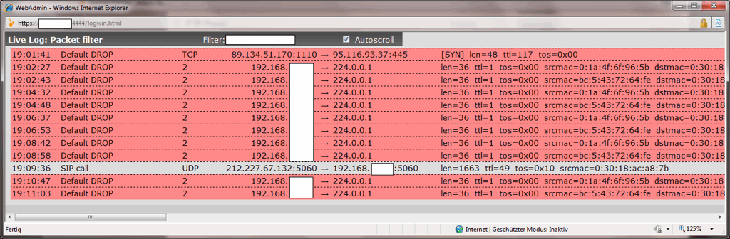 Wenn ich mir das Live-Log des Paketfilters anschaue, dann wird der eingehende Anruf auch als SIP call erkannt. Aber mehr passiert auch nicht. Das IPS-Log zeigt keine Einträge.