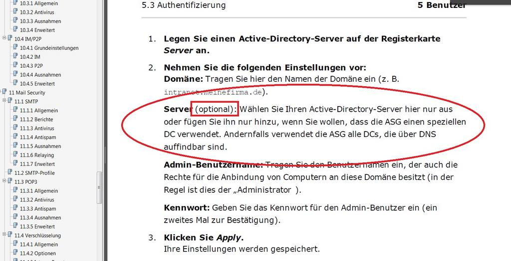 Laut Astaro-Doku lässt sich das jedoch umgehen (siehe Anhang), wenn man keinen Server bzw. das "Server:"-Feld frei lässt. Dann würde die Astaro einfach die Server nehmen die sie über DNS findet. Das funktioniert jedoch leider nicht.