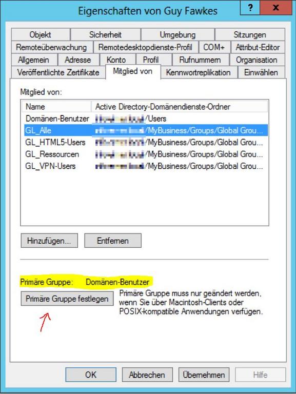 Mit der primären Benutzergruppe geht es leider nicht --> meistens Domänen-Benutzer