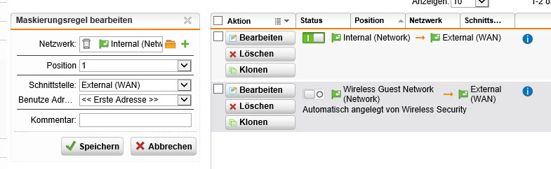 Wenn Client, passt das Masquerating und Firewallregeln?