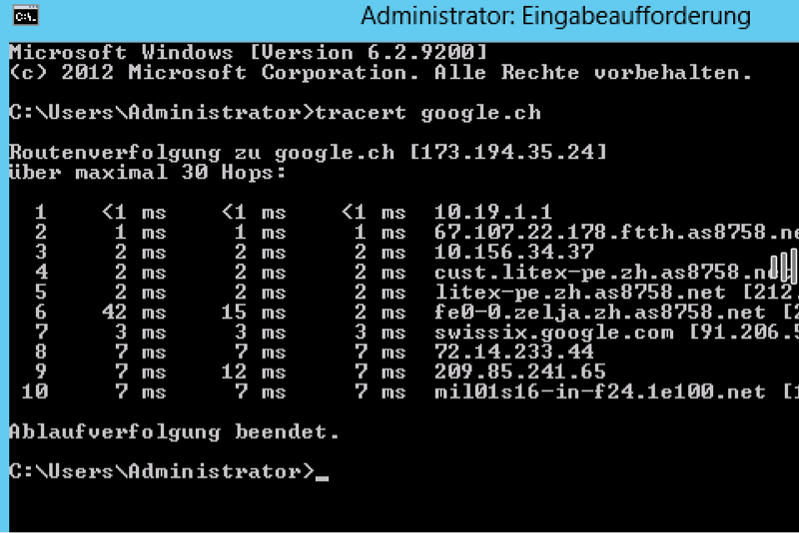 • Ich habe zuhause einen Fiber anschluss und dort gibt es ebenfalls eine 10er (10.156...) IP im WAN Netzwerk.  Was zeigt ein tracert auf die IP an? Wird die 10er adresse auch bei einem Tracert auf google angezeigt wie bei mir?