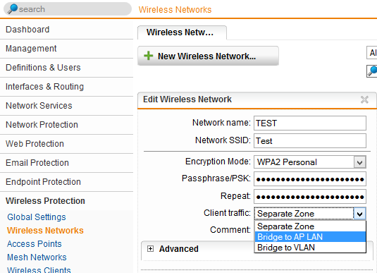 Nicht ganz korrekt. Der Tunnel zwischen AccessPoint und UTM ist nicht verschlüsselt, sondern nur gekapselt. Es wird hier anstelle von CAPWAP auf ein proprietäres Protokoll gesetzt.