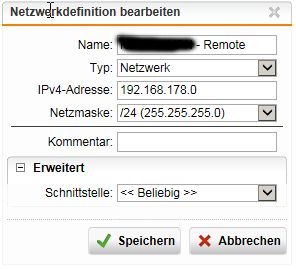 • Hast du das Netzwerkobjekt des Zielnetzes an eine Schnittstelle gebunden (Defintions & Users -> Network Definitions ->  -> Edit -> im Bereich "Advanced" "Interface:")?