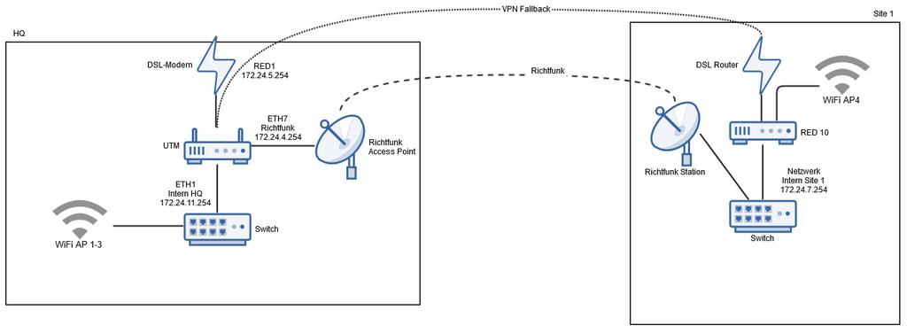 Zusätzlich liegt noch DSL am zweiten Standort falls die Richtfunkstrecke ausfällt.