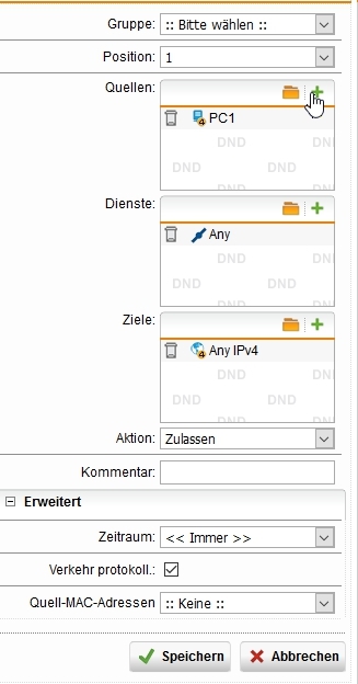 • Ich hab das mal mit Any bei den Diensten probiert, keine Verbindung unverändert! Aber wenn die Regel alle Dienste erlaubt kann es ja nicht an den Regeln liegen?