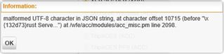 malformed UTF-8 character in JSON string, at character offset 10715 (before "\x{132d73}rust Serve...") at /wfe/acc/modules/acc_misc.pm line 2098