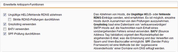 • schau mal unter: Email Protection - SMTP - Antispam _ Advanced Antispam (ganz unten)