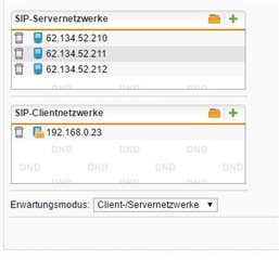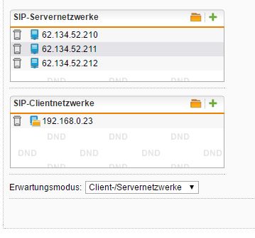 Bei SIP Servernetzwerken habe ich als Typ jeweils Host hinterlegt, bei dem SIP Clientnetzwerk auch Host und die IP des Telefons angegeben. Ich habe kein Ahnung, ob Host hier korrekt ist oder man etwas anderes nehmen sollte. Später möchte ich noch weitere Telefone hinzufügen. Was kann ich beim Erwartungsmodus einstellen, Ziel soll es natürlich sein, so wenig "Löcher" wie möglich in der Firewall zu haben.