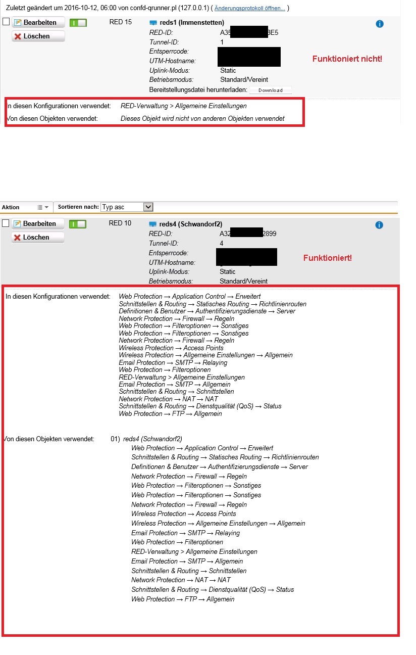 Es wurden vor einiger Zeit bereits 2x RED10 an die UTM angebunden. Diese sind nach wie vor online/aktiv und verrichten ihren Dienst problemlos.