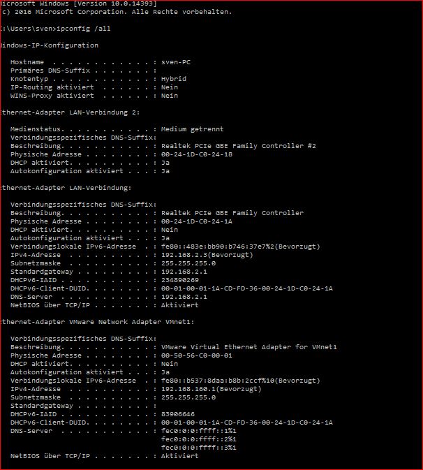 Von meinem Win 10 mit VPN-Client verbinde ich mich erfolgreich mit meinem NW-System zu Hause. Den PC, Drucker und andere Geräte im Haus-NW kann ich anpingen und kann auch