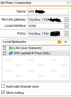 Leider habe ich keine Idee wo ich weiter suchen könnte bzw. ob die Fritz!Box oder die UTM das Problem ist. Hier Screenshots aus der UTM Config sowie im Anhang die Fritz!Box Config.