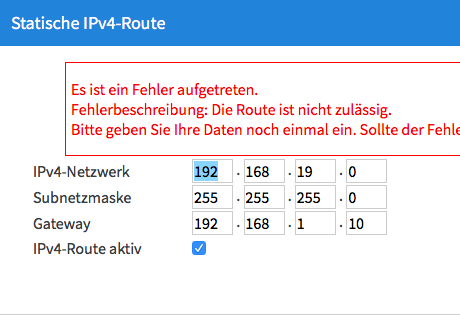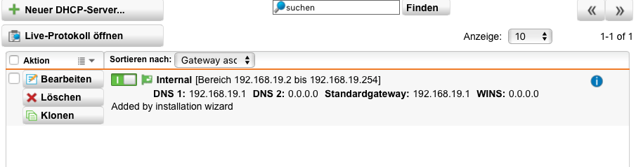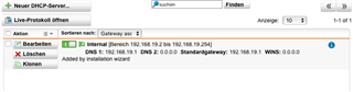 • Intern 192.168.19.1 an Gateway 192.168.19.1
