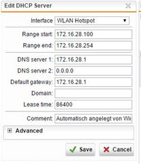 Mit dieser Konfiguration kann ich mich zwar mit dem WLAN HOTSPOT verbinden, jedoch kommt keine automatische Abfrage nach einem Voucher oder einer Zustimmung der Nutzungsbedingungen. Des Weiteren bekommt der Client keine IP Adresse von diesem DHCP Server sondern vom internen.