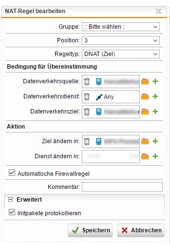 Wir nutzen im Haus eine Sophos UTM Firewall und ich hänge etwas an der Konfiguration der NAT Regel.