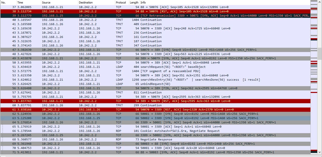 Und wenn ich es über den FreeRDP Client mache, dann bekomme ich in WireShark auch keine TCP Retransmissions.