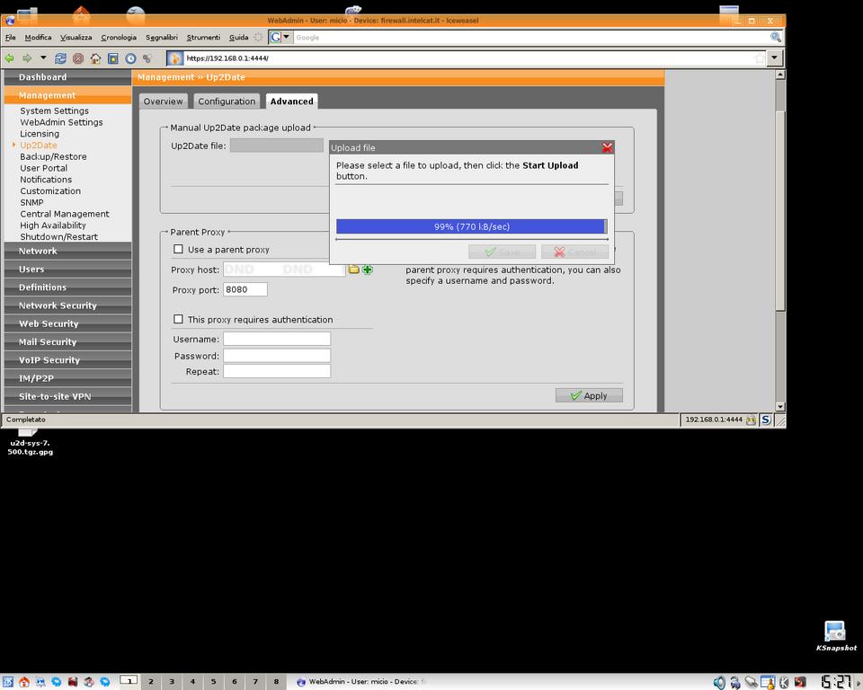 panel "Management---Up2date---Advanced" following the manual procedure but after a long time it stop when is about at 99% .