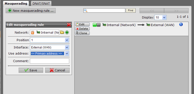 • Here is the only rule set up (it was set up by the install). This is the same as on the Astaro install that is working.