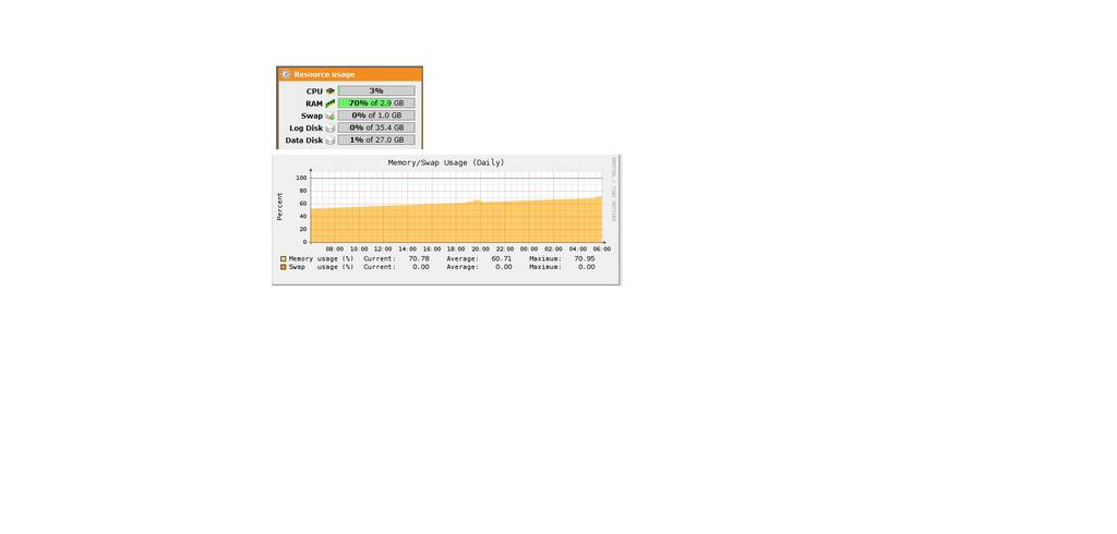 Hi I am running the latest ASG 7.501 pattern version  11169, and i have noticed that memory usage reported on the dashboard increases drastically over a 3 day time period. I only have 2 packet filter rules specified and the output of top does not indicate anything out of the ordinary.  Is this an issue that i should be worried about. I am running ASG on an Intel socket 775 3.0Ghz 2mb L2 cache with hyper-threading, i have 3 GB of ram installed and currently the dashboard shows i am using 70% of my ram..i am not sure why this is so high but my reporting indicates this increase is constantly going up