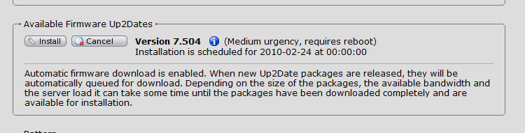 [FONT=Arial][SIZE=2]Greetings! We just released the 7.504 Up2Date in our normal "soft" policy. For those who just like to download, you can find it on our ftp here: ftp://ftp.astaro.de/pub/ASG/v7/up2date/u2d-sys-7.504.tgz.gpg at about 175MB in size.