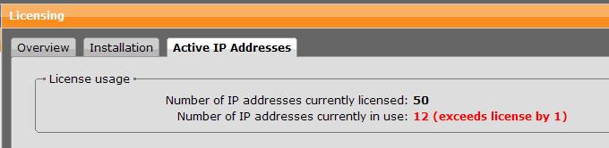 I was told that the new license files would now allow up to 50 IP addresses to be protected. So, I re-downloaded my license file and installed it. The Web-based GUI now does tell me that I am licensed for 50 IP addresses, but it look like some system sub-parts do not quite agree with that because I am getting warning messages stating that with 12 IP addresses in use I have exceeded the licensed limit....