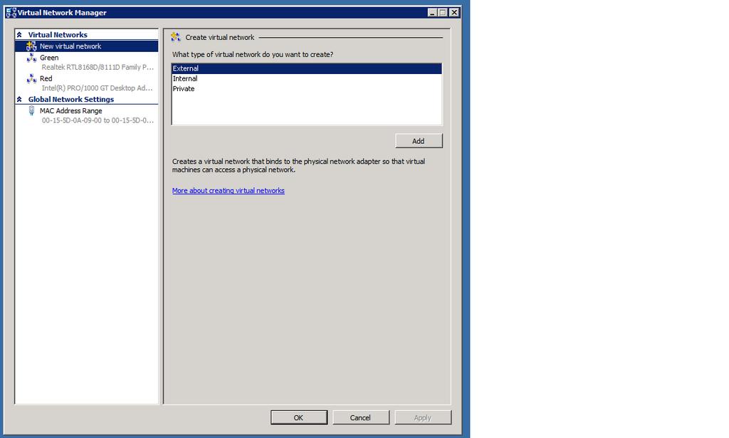 I've attached images of the settings of the hyper-v virtual network manager as well as astaro guest settings.  Same procedure of shutting down the astaro guest and then modifying the astaro guest settings.