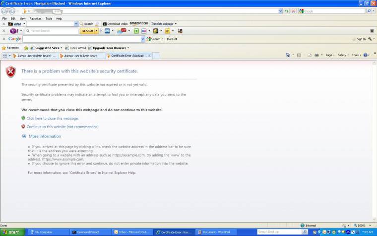 Make certain that the time and date are correct on your Astaro.  See the second screenshot.