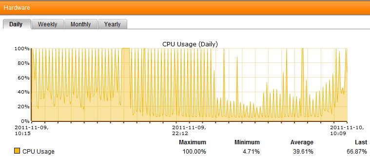 This behaviour began about 2 weeks ago and increased the CPU-usage from under 50% to over 75%.