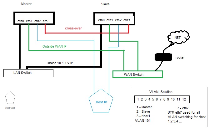 My final test to implement HA ( have many other projects taking priority ), is to understand if there is any other way to connect both boxes to all interfaces, without using three VLAN ports or a small switch for each interface.