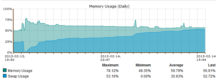 Swap:  1048572k total,   401552k used,   647020k free,   606832k cached