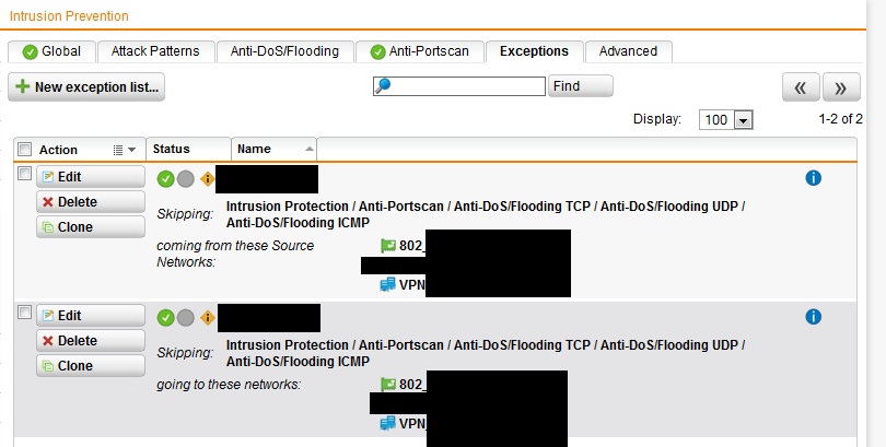 Go to Network Protection->Intrusion Prevention-> Exceptions Tab