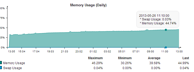 However memory swap climbed almost instantly to over 50% of RAM.  I know there has been some discussion on swap usage, but am unsure of the outcome.  CPU looks fine.
