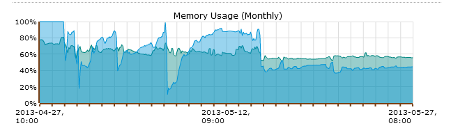 attached is the monthly graph of the memory usage, including the big restart (10 May), and switch off http proxy (15 May). Your thoughts are much appreciated on this matter.