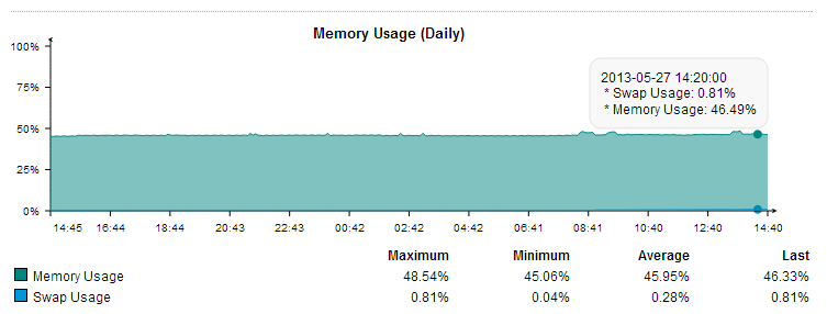 However memory swap climbed almost instantly to over 50% of RAM. I know there has been some discussion on swap usage, but am unsure of the outcome. CPU looks fine.